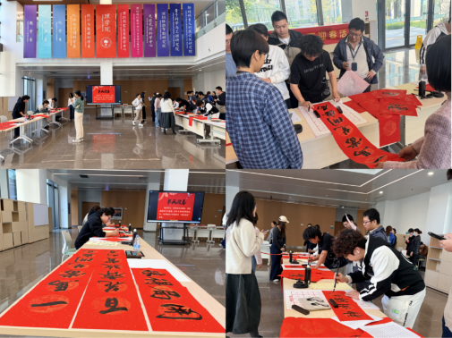 活动现场还设置了书画体验环节,教职工纷纷提笔参与,在亲身实践中感受中华优秀传统书画艺术的独特魅力,在淡淡墨香中迎接新春的到来,60余名教职工参与其中。